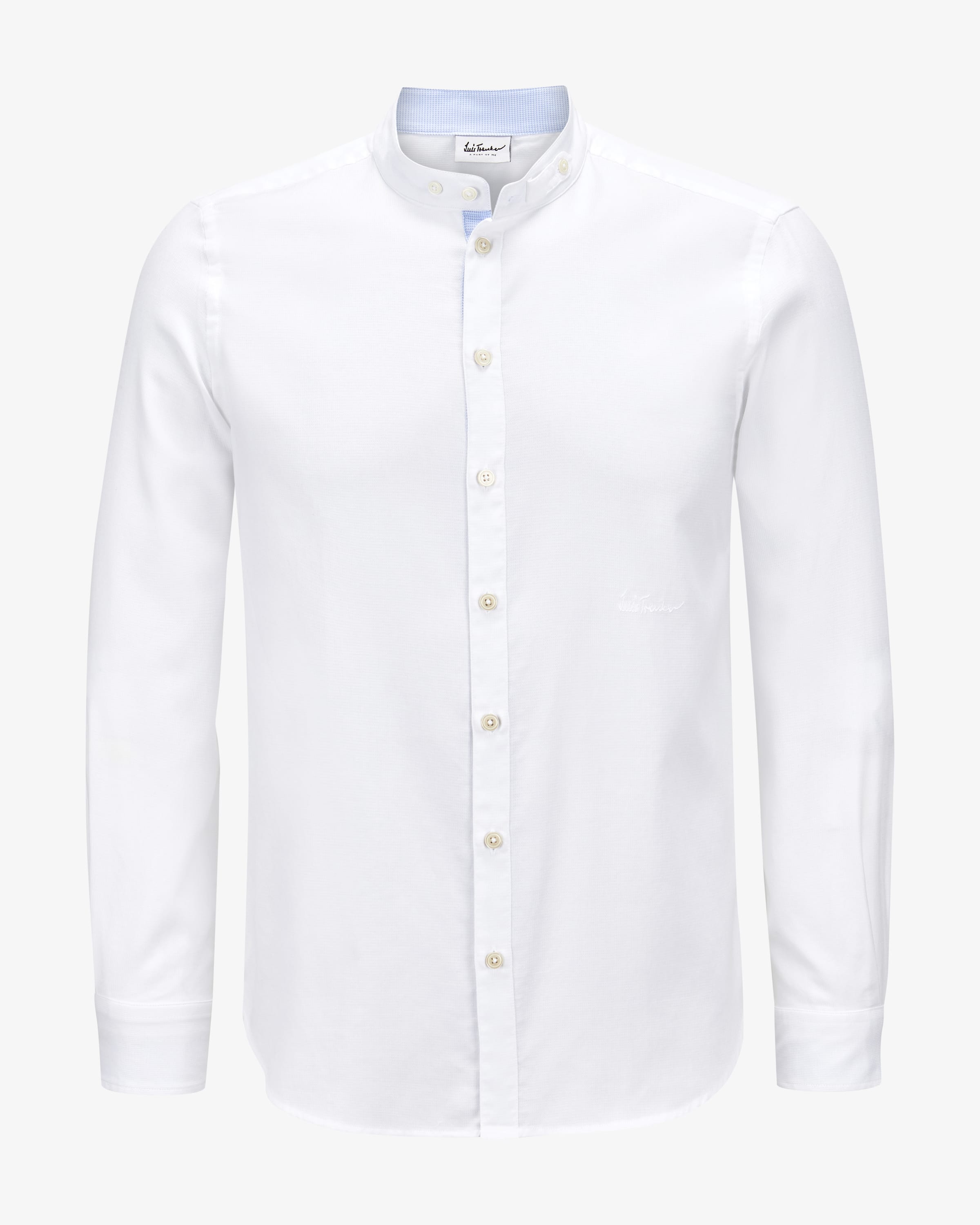 Lubernet traditional shirt for men from Luis Trenker in white. The model made from cotton quality presents itself in a traditional-modern look thanks to the fine traditional-modern look, while the contrasting trim creates a stylish a stylish companion for festive occasions - whether worn with traditional costume or for stylish appearances away from folk festivals.