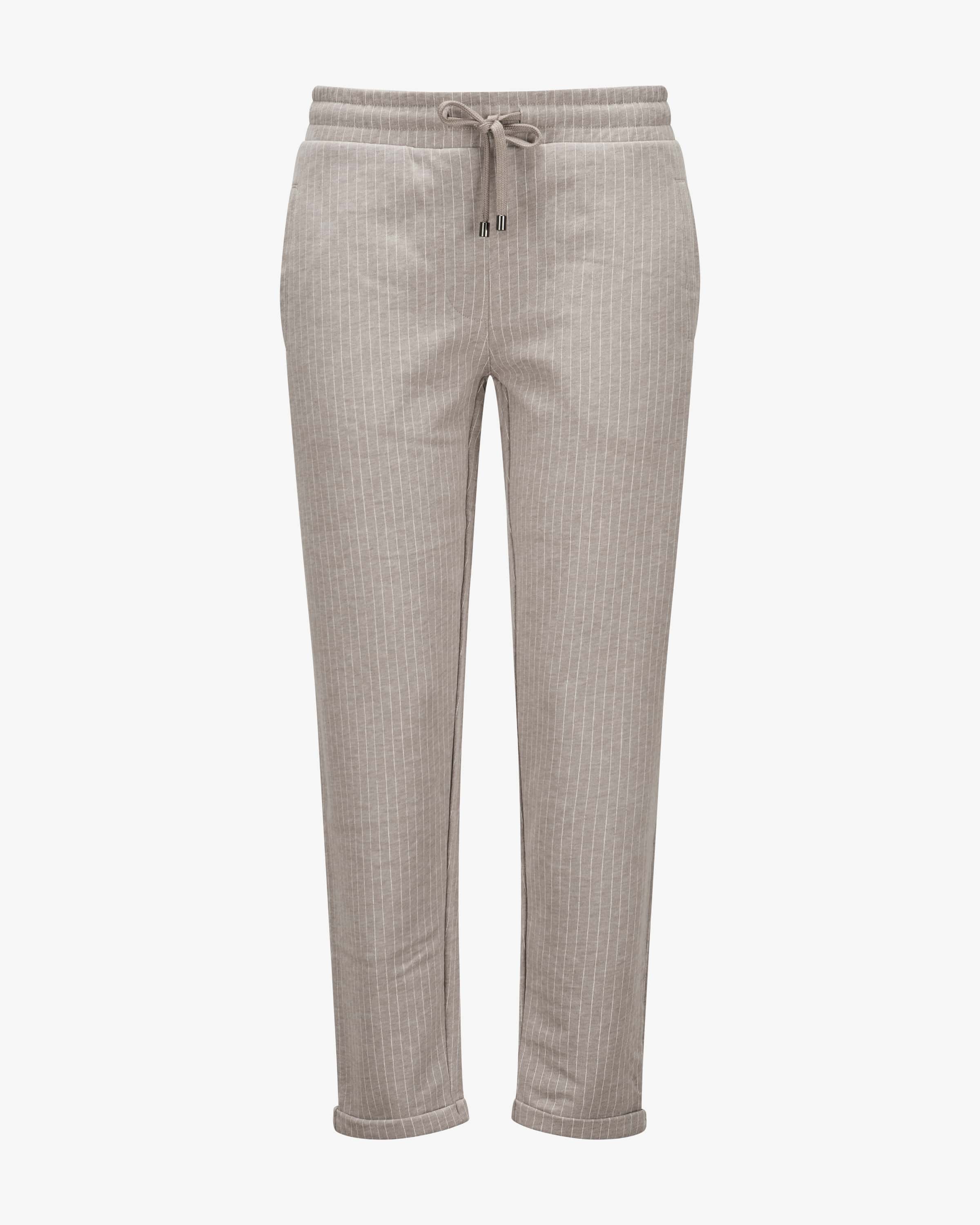 Margie 7/8 jogging pants for women by Juvia in taupe and off-white. The German brand stands for luxurious loungewear with a sporty touch - cozy, soft and stylish at the same time. This cropped style also scores highly thanks to its soft fabric and the elasticated waistband make it extremely comfortable to wear, while the fine pinstripes pinstripes create a fashionable favorite for casual looks.