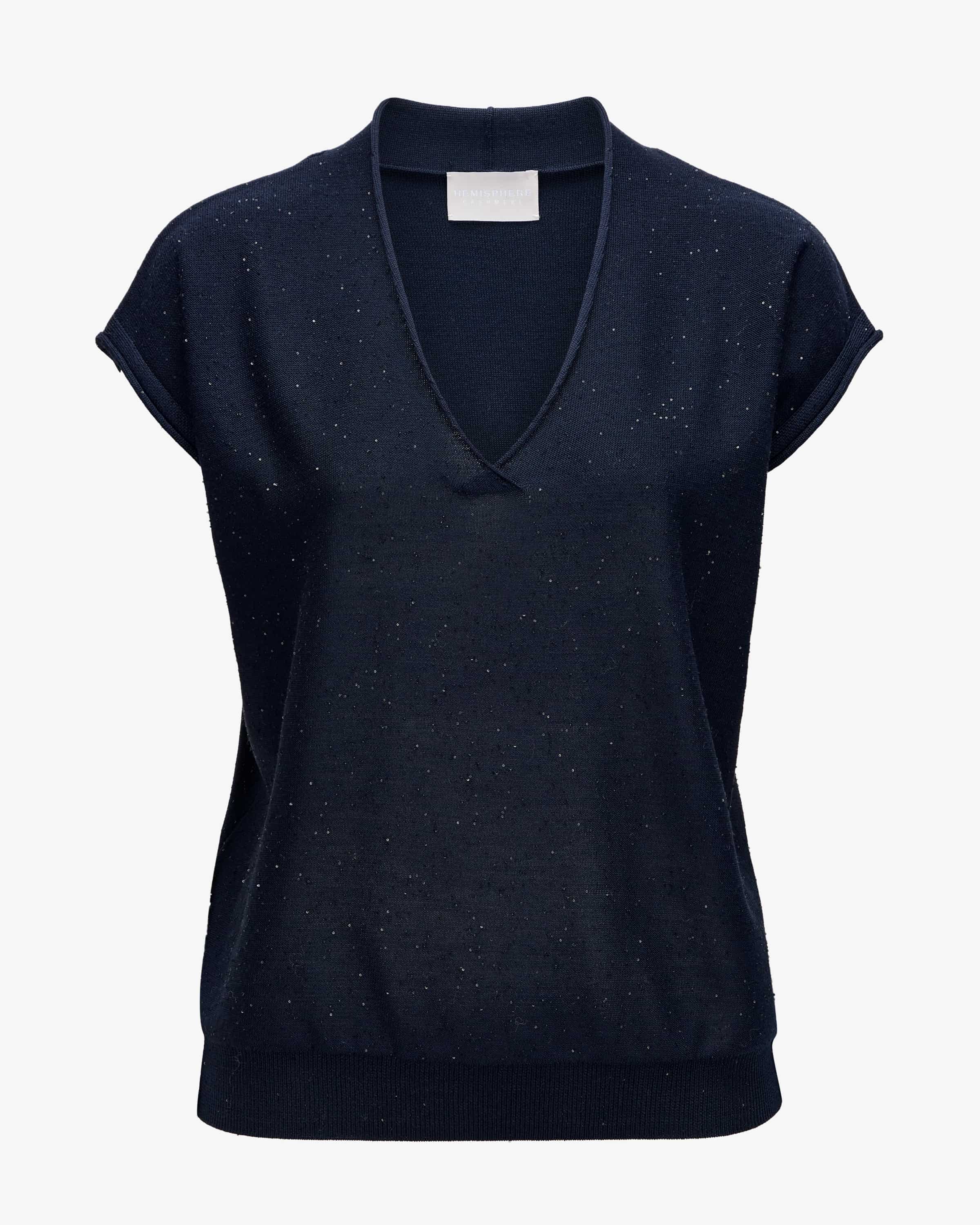 Jumper for women from Hemisphere in navy. This model in a high-quality wool blend is comfortable to wear, while the simple cut is elegantly rounded off is elegantly rounded off by the feminine sequin details.