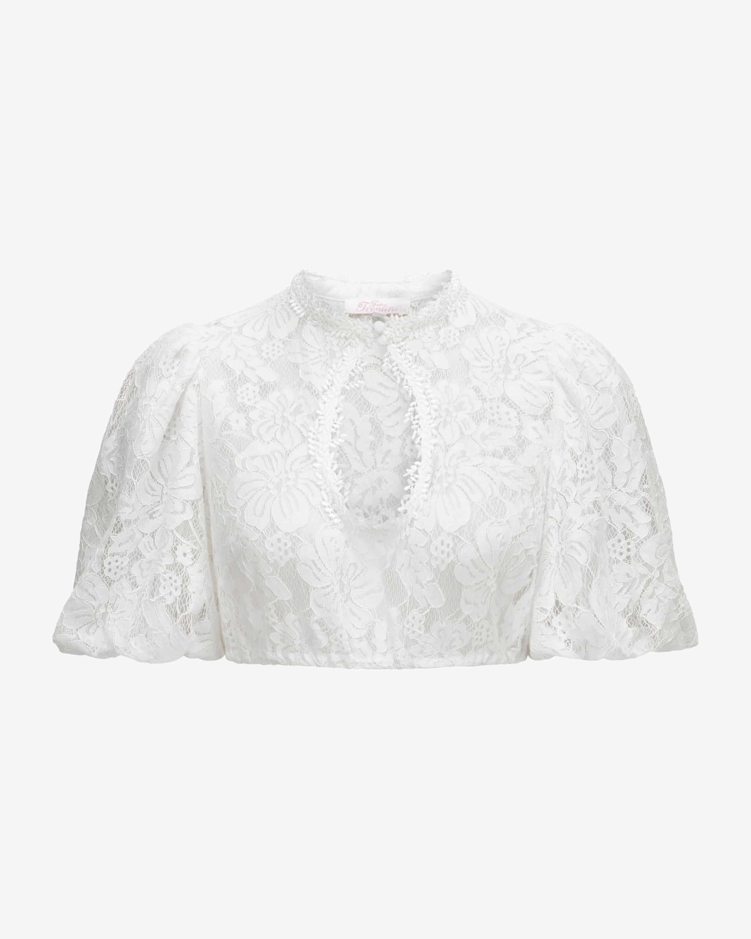 Minna dirndl blouse for women from Julia Trentini in ecru. The semi-transparent model impresses with its floral lace design, which together with the puffed sleeves puffed sleeves for a romantic traditional character.