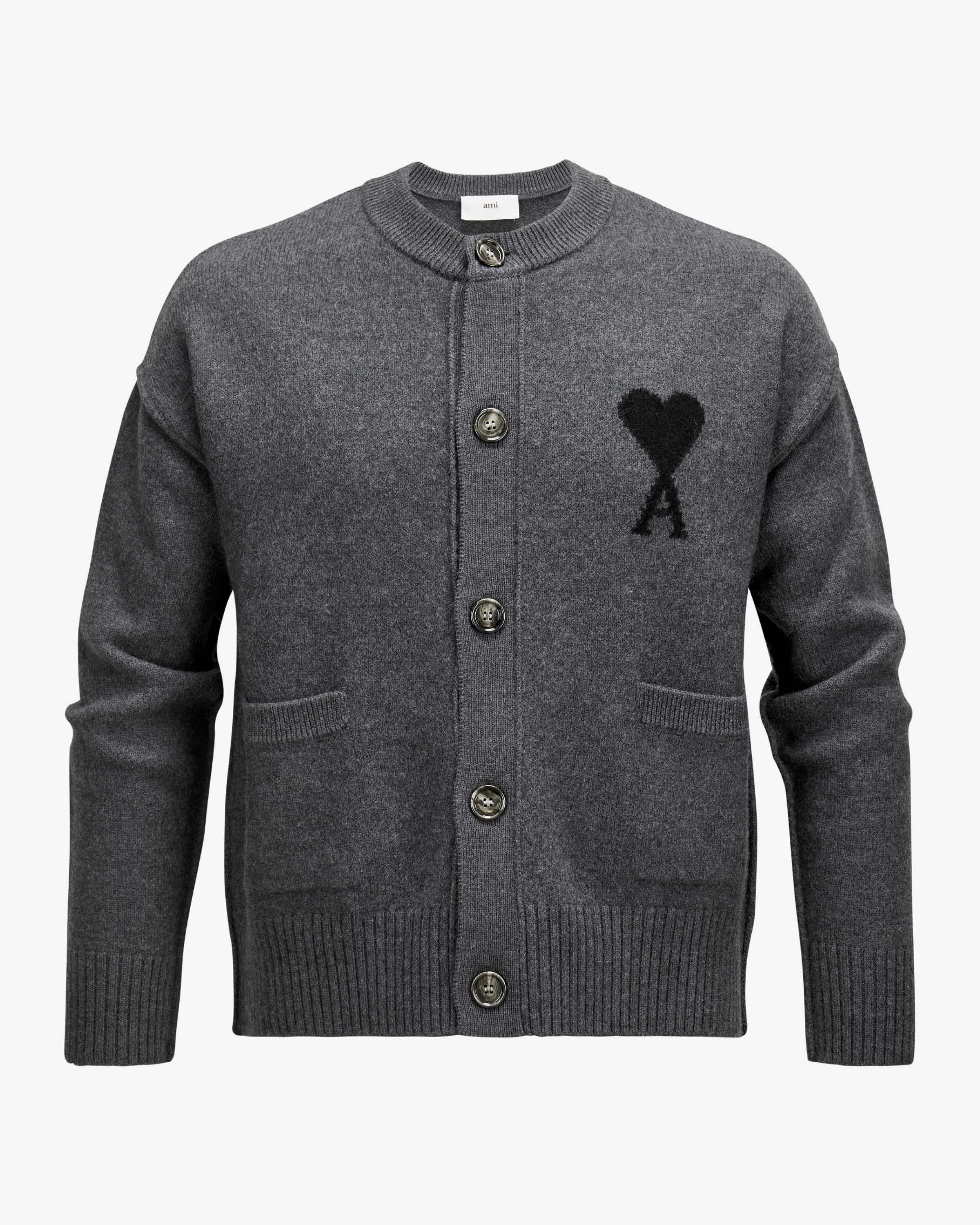 Cardigan for men from Ami Paris in gray. Ami Paris is named after the friends of friends of Alexandre Mattiussi - fashion with a personal touch. The model impresses thanks to the high-quality virgin wool in a heavy finish and the label's signature heart-shaped logo inlay, while the striking inside-out seams create a casual look. seams create a casual look.