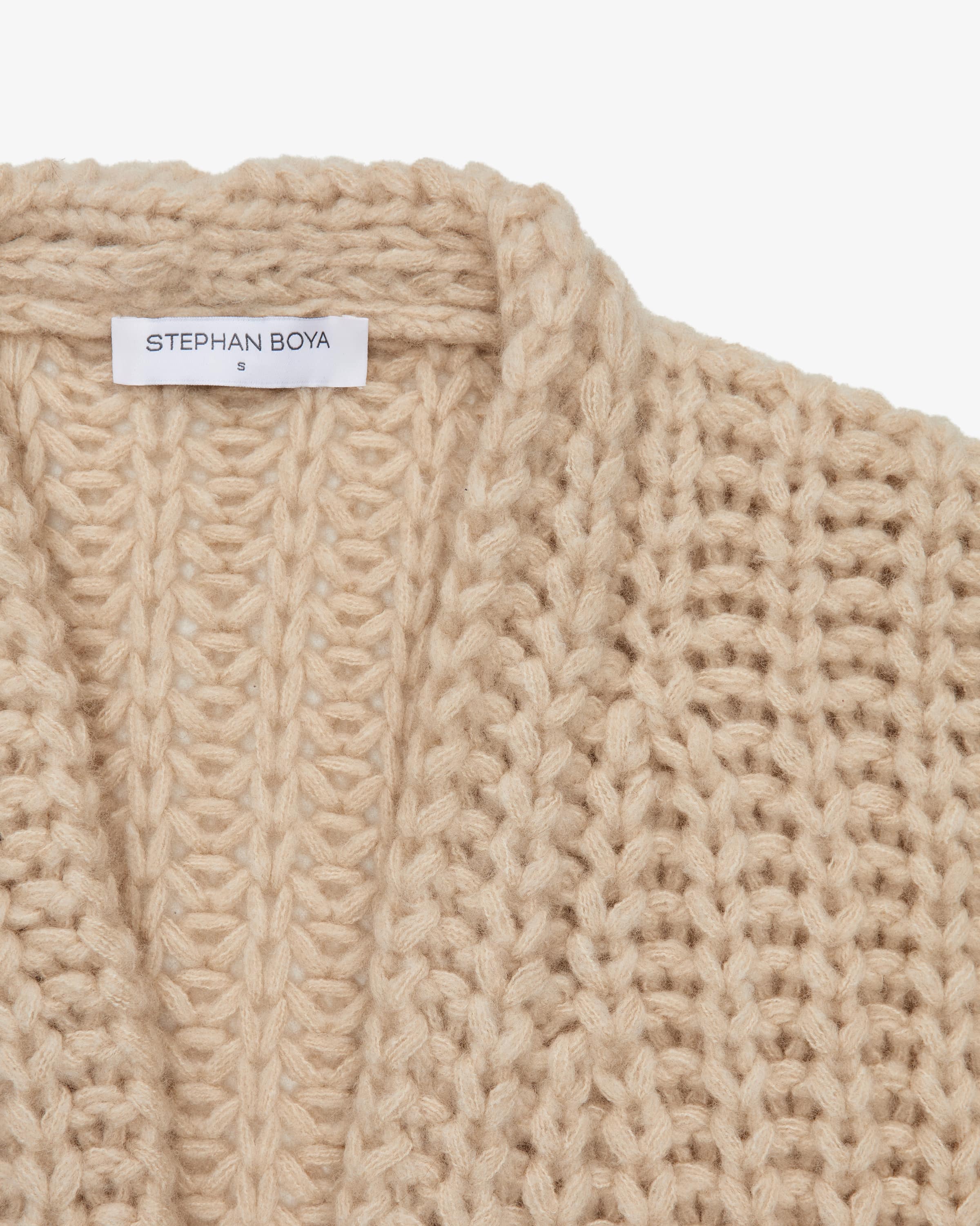 Padme cardigan for women from Stephan Boya in beige. The Hamburg label stands for for luxurious cashmere pieces with a purist look - stylish, minimalist, high-quality. Thanks to the high-quality cashmere processing, this hand handcrafted model with a particularly soft feel, while the oversized silhouette combined with the silhouette combined with the chunky knit design creates a comfortable look. creates a comfortable look.