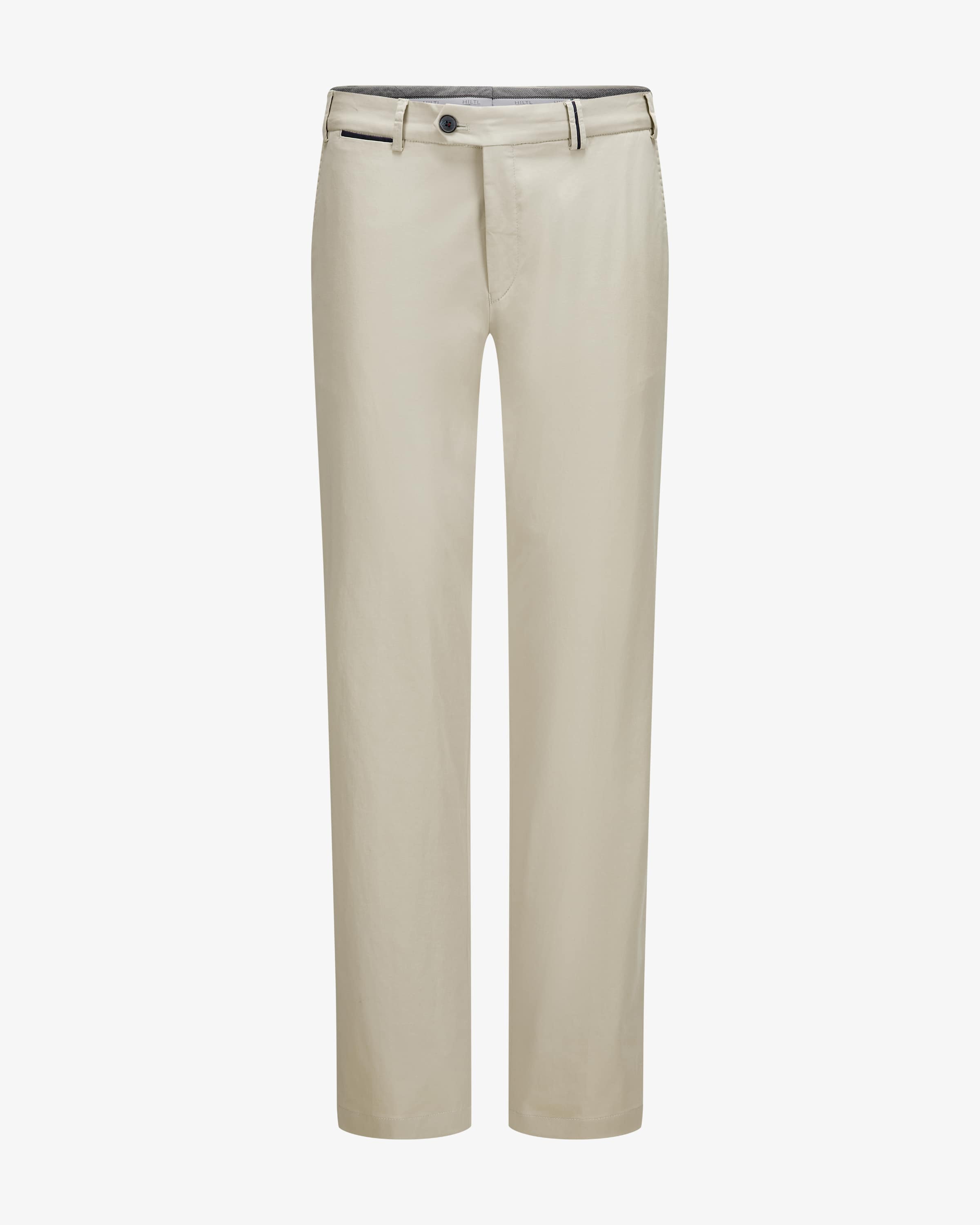 Peaker-S contemporary fit chinos for men from Hiltl in sand. The model made from hand-picked US cotton presents itself in a timeless design. In addition to characteristic features, the trousers stand out thanks to the shirt stopper on the inside of the waistband and the contrasting piping on the pockets and the belt loop. belt loop.