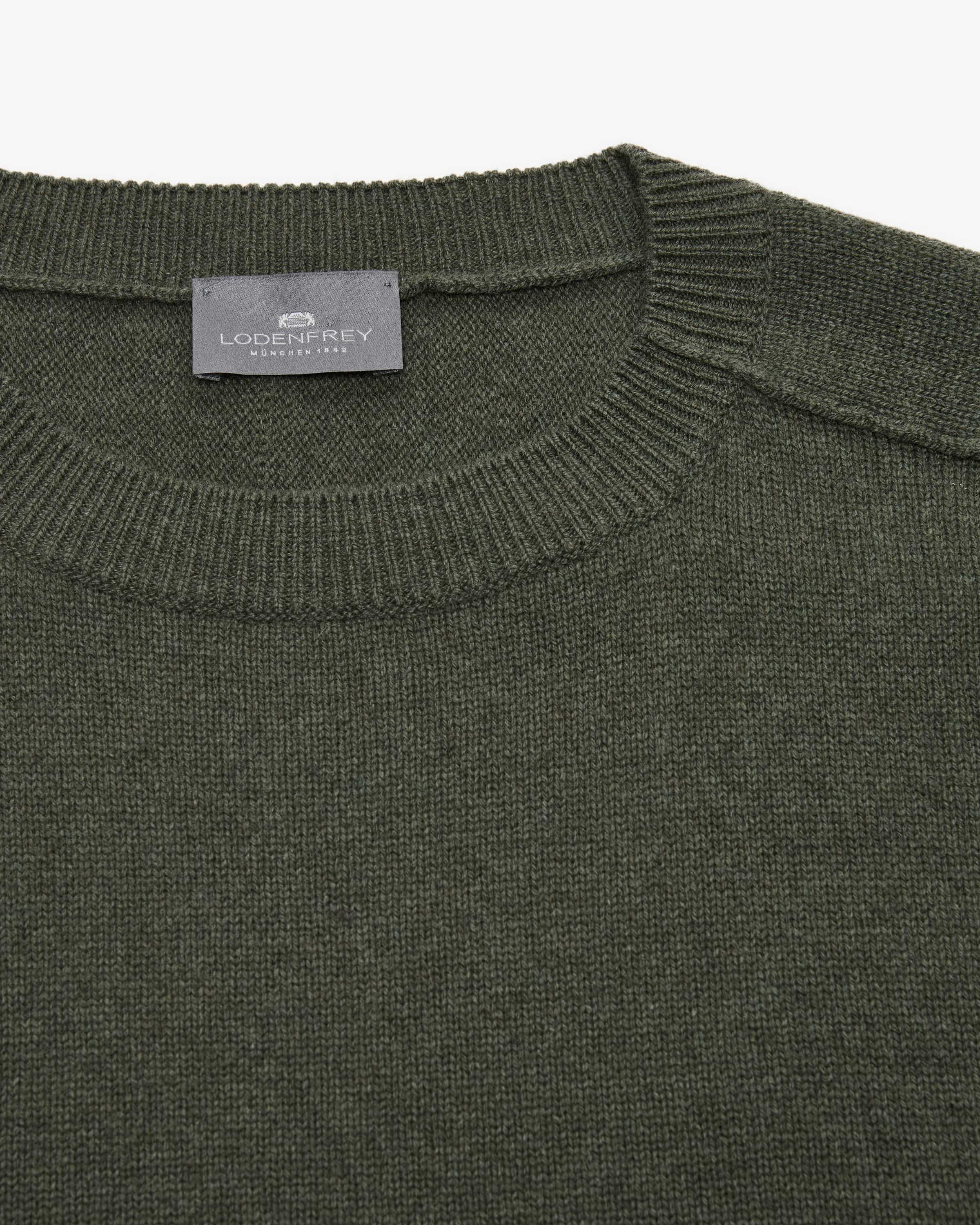 Pullover for men from LODENFREY in dark green. The classic knitted pattern and the high-quality virgin wool finish create a tactile highlight, while the simple design creates a versatile basic.