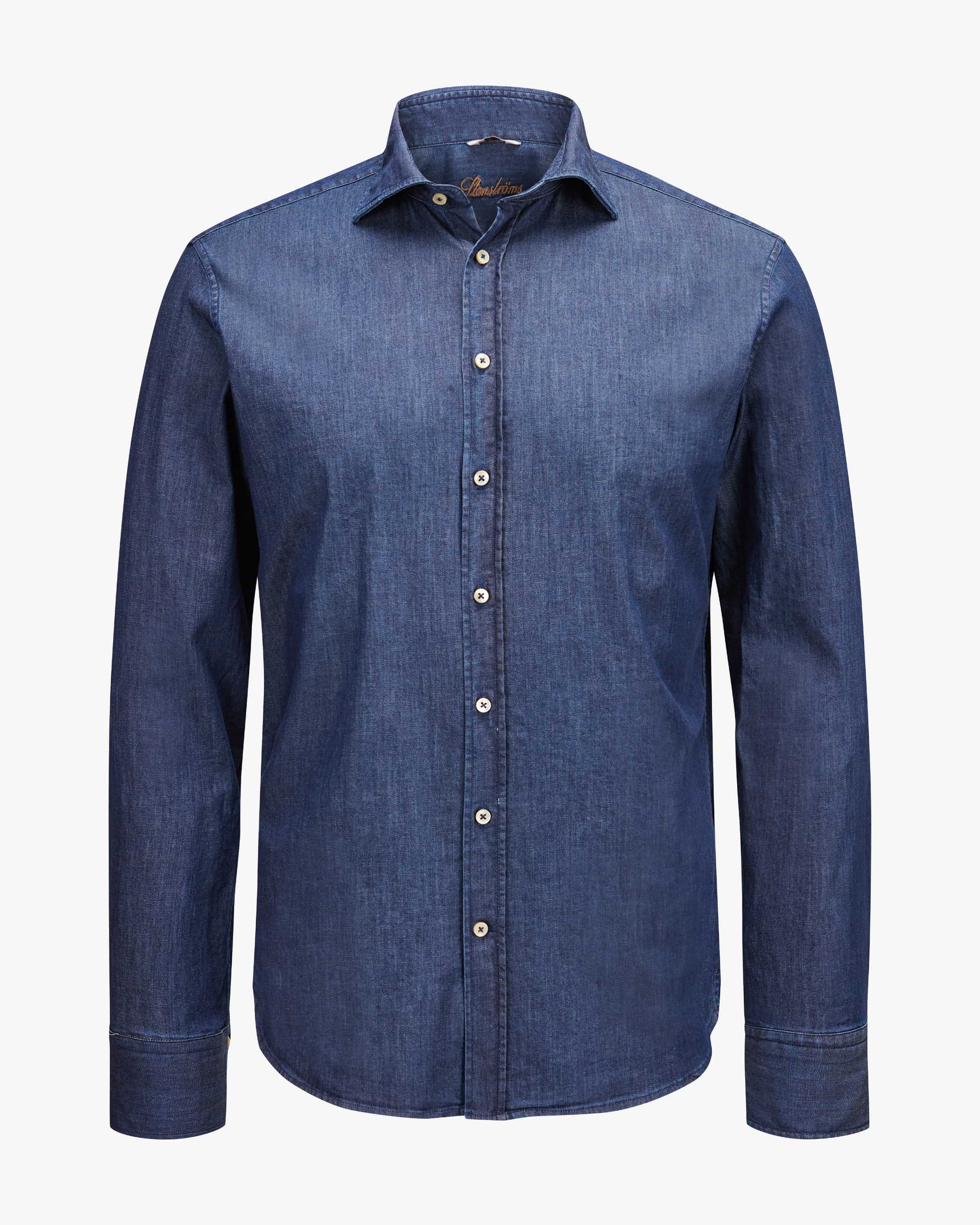 Regular denim shirt for men from Stenströms in dark blue. Classic and stylish at the same time, this straight-cut casual shirt in stretch cotton stretchy cotton fabric. The denim look also gives it a modern character. character.
