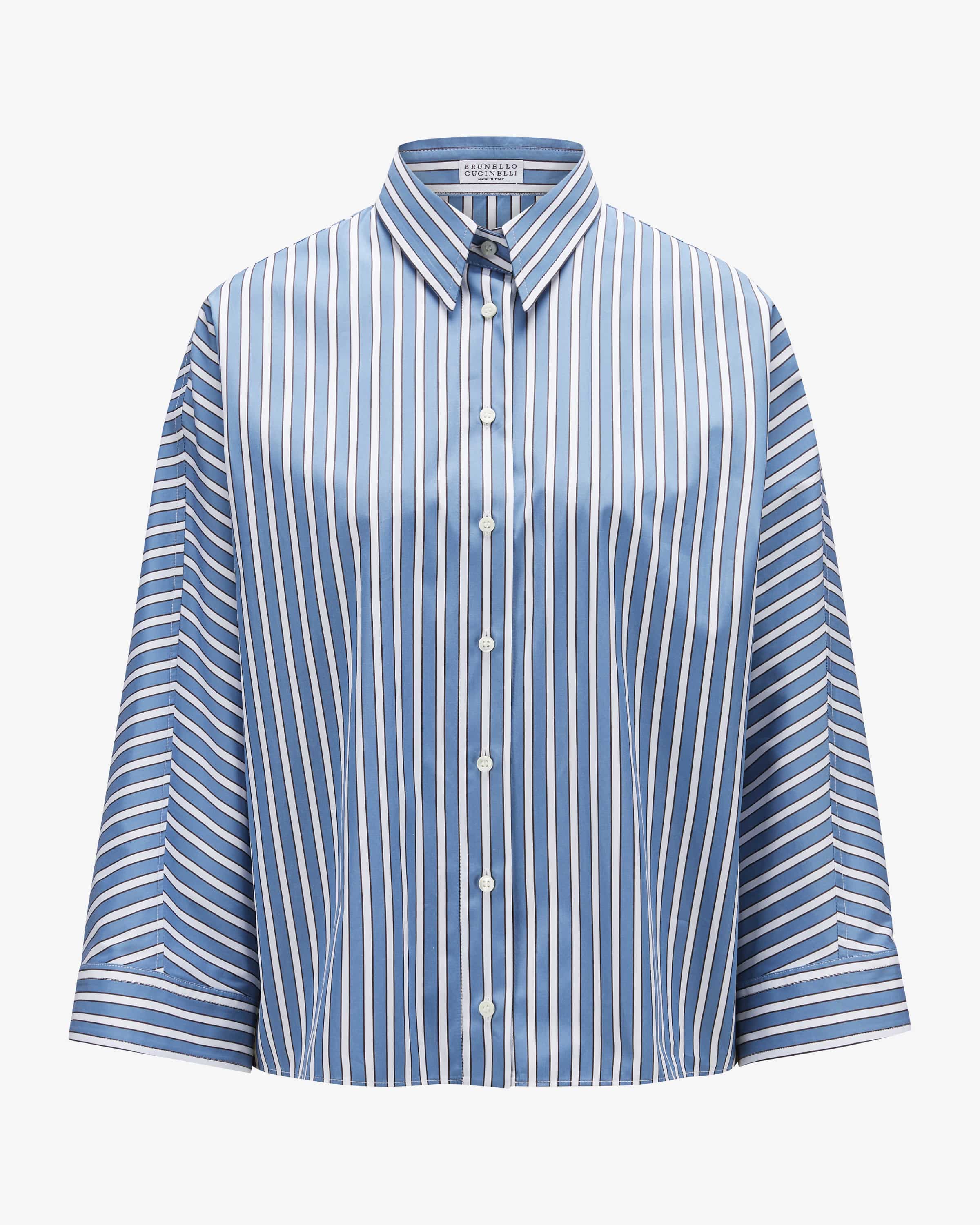 Shirt blouse for women from Brunello Cucinelli in blue and white. The Italian label based in Solomeo is known for luxurious, hand-finished materials. materials. This model in a wide oversized fit also impresses with its high-quality cotton fabric, while the nautical stripe pattern and classic classic details skilfully round off the fashionable design.