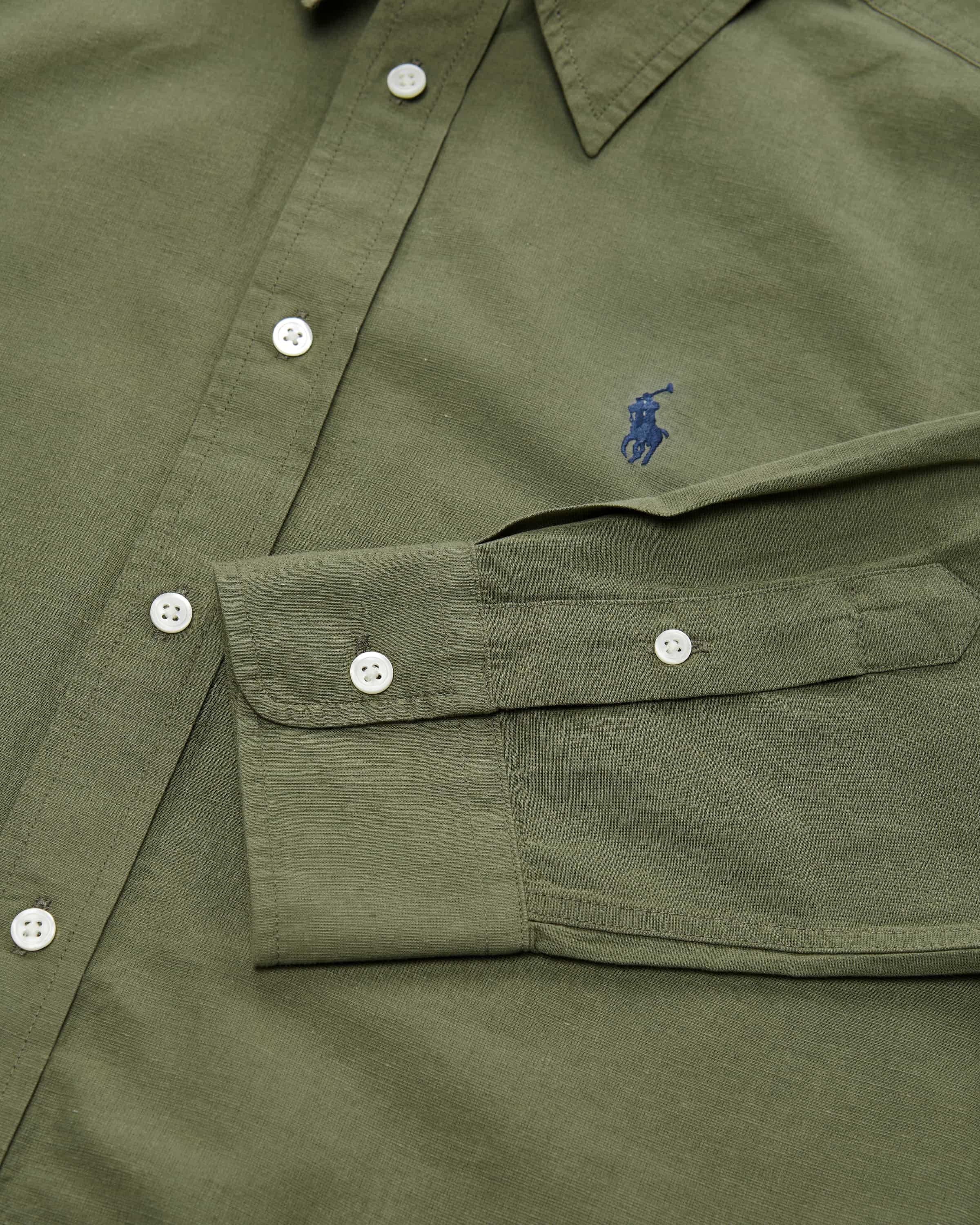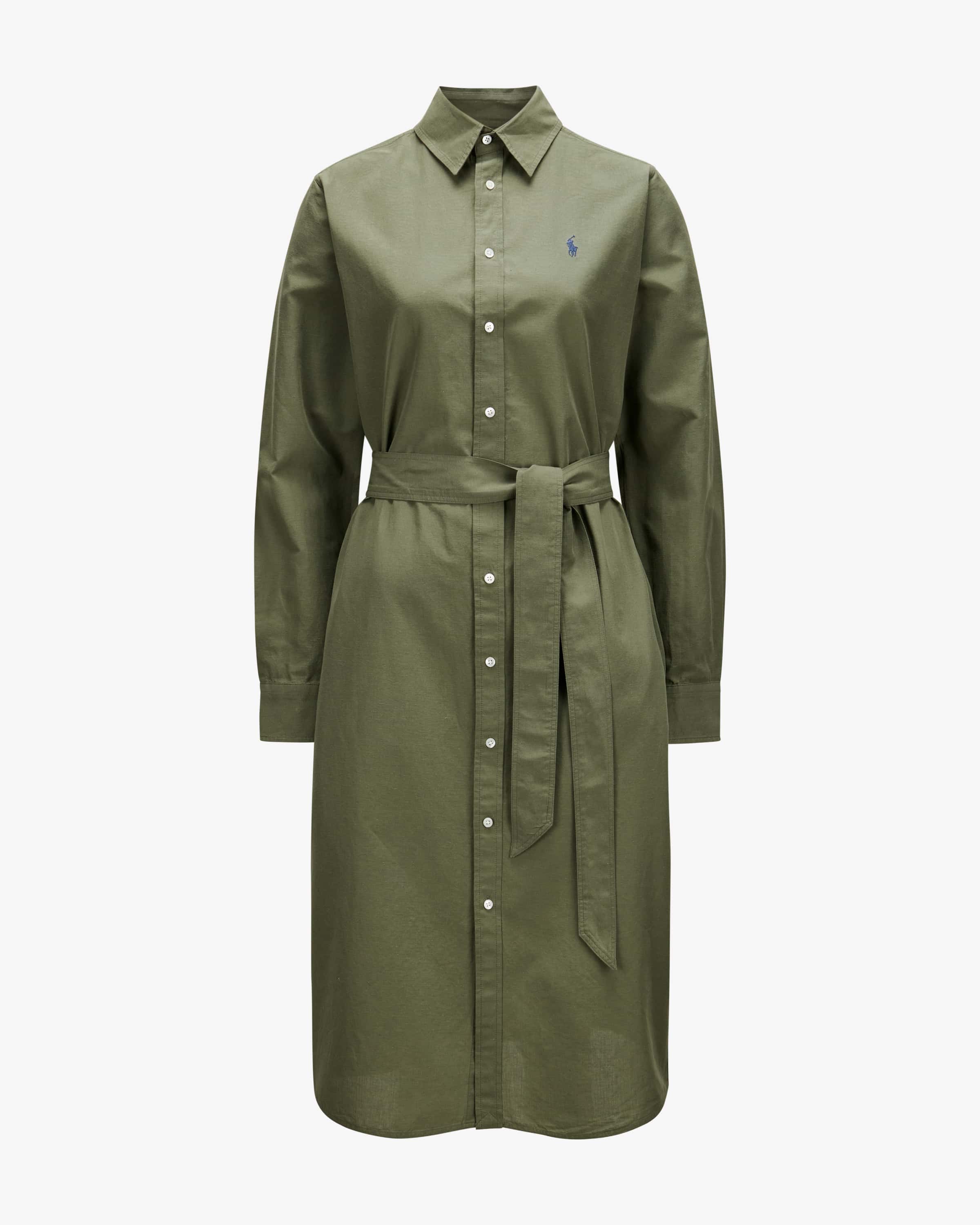 Shirt dress for women from Polo Ralph Lauren in khaki. The brand is an icon of the American lifestyle - sporty, preppy, classic. The model thanks to its lightweight cotton-linen blend with a pleasant feel, while the wide the wide shirt blouse silhouette has a feminine twist thanks to the detachable waistband. a feminine twist. Practical pockets skilfully round off the look.