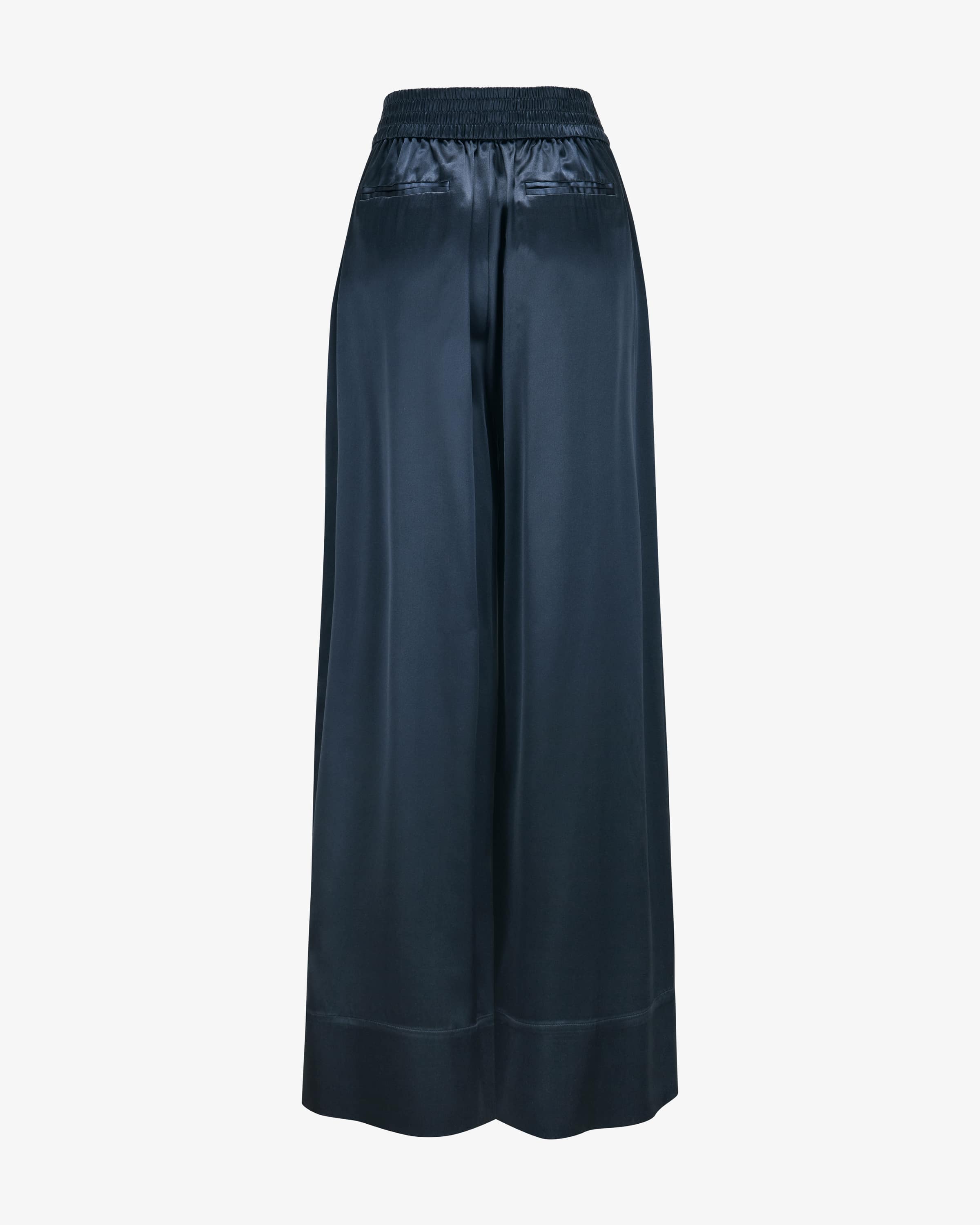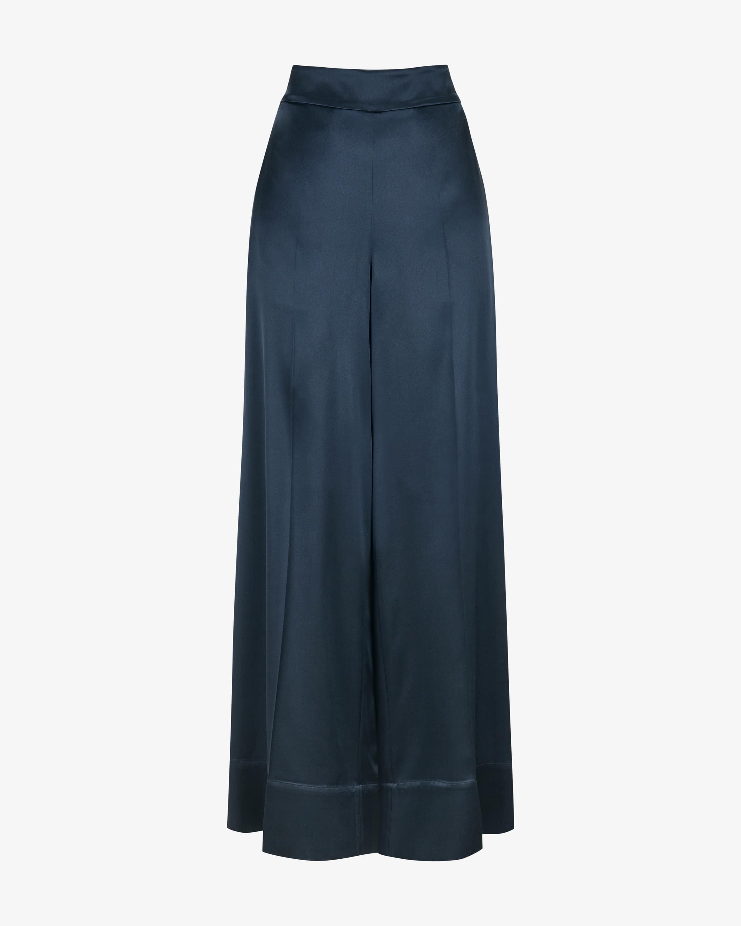 Silk trousers for women from Joseph in navy. The London label stands for modern classics classics with architectural clarity - luxurious basics with a perfect fit. fit. This flowing style also impresses with its high-quality silk, which guarantees comfortable moments of wear. The partially elasticated waistband and wide fit fit create an elegant look for stylish business looks.