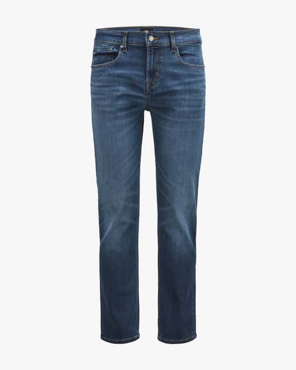 Slimmy jeans for men from 7 For All Mankind in light blue. The subtle wash and classic details create a versatile favorite with a sense of style, while the style, while the stretchy cotton fabrication promises comfortable promises comfortable wear.
