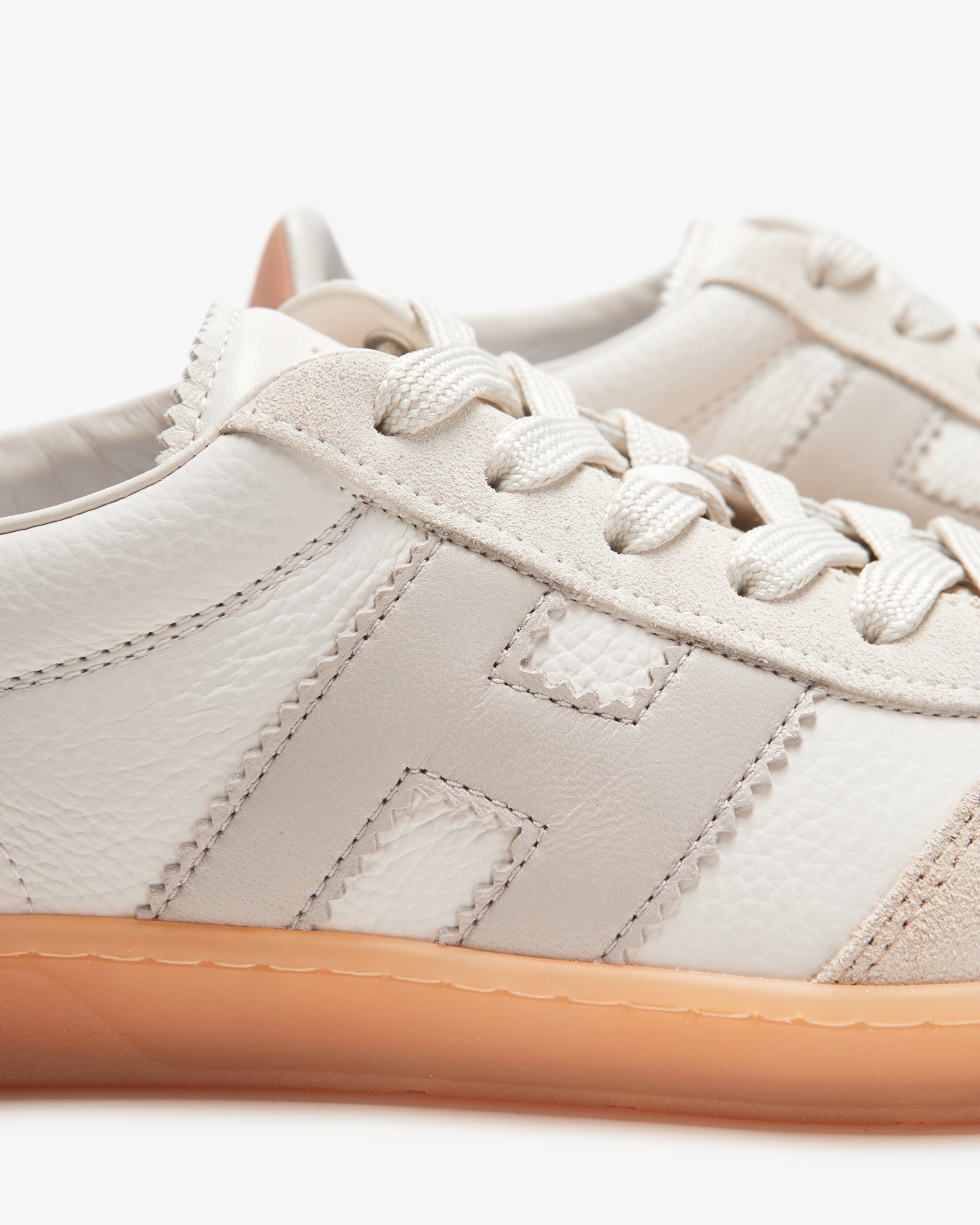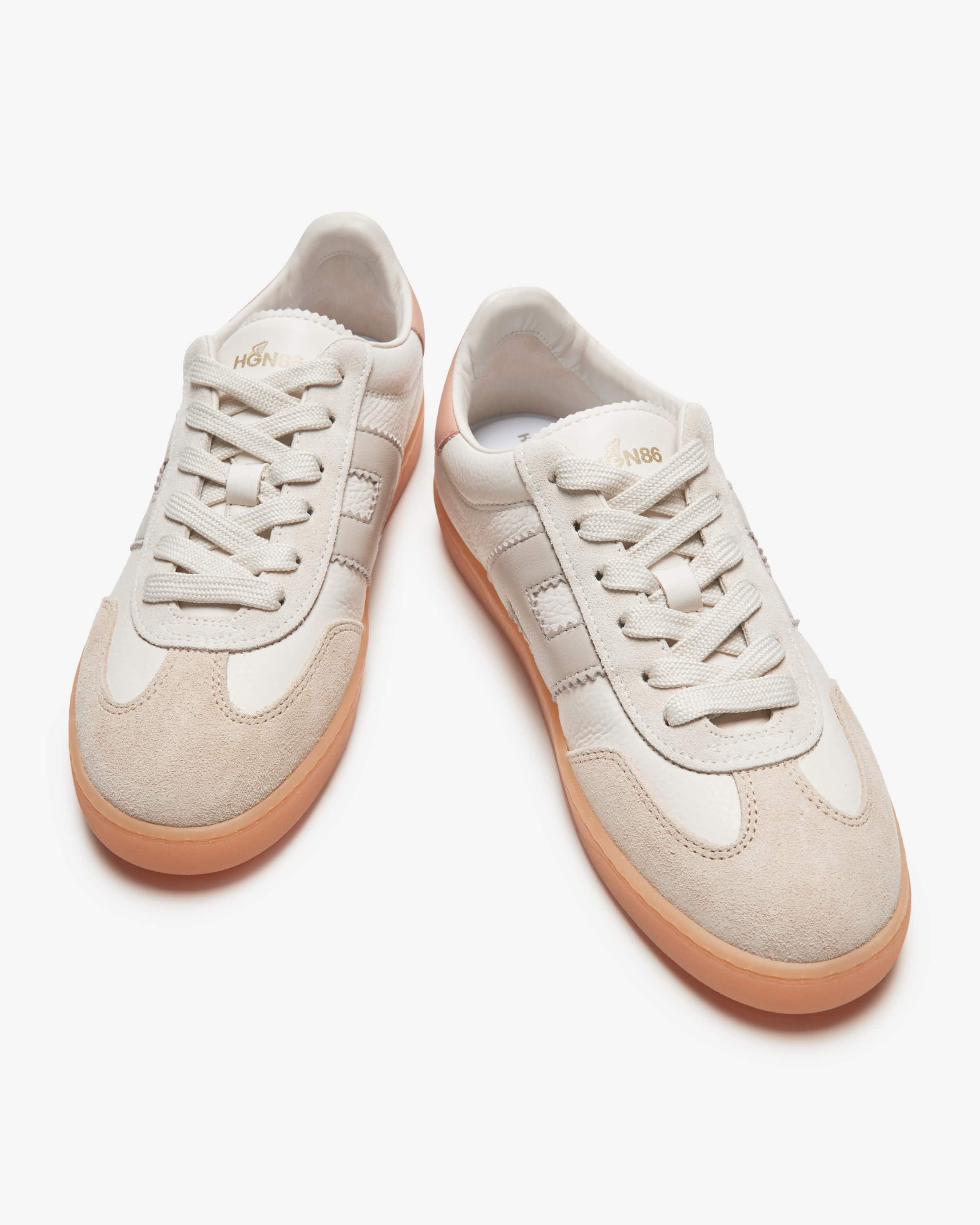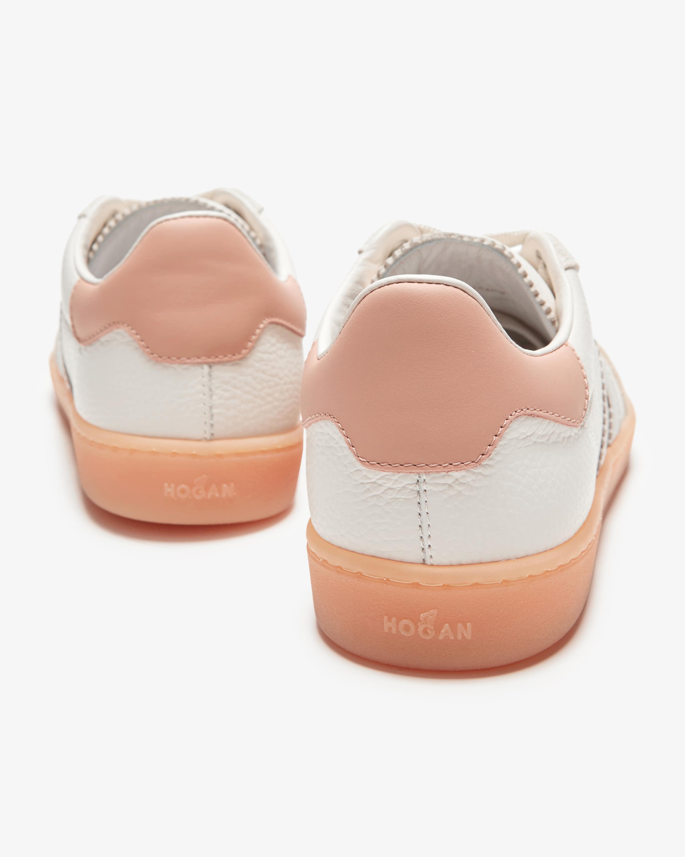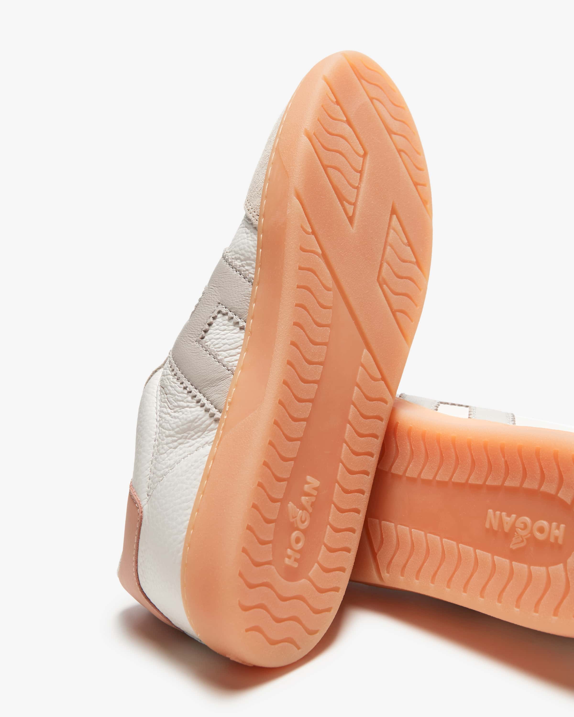Cool sneakers for women from Hogan in white, antique pink and gray. The model is characterized characterized by the harmonious blend of retro elements and modern lines, which is skillfully underlined thanks to the contrasting leather mix. At the same time, the softly padded memory foam insole ensures a particularly high level of comfort. wearing comfort.