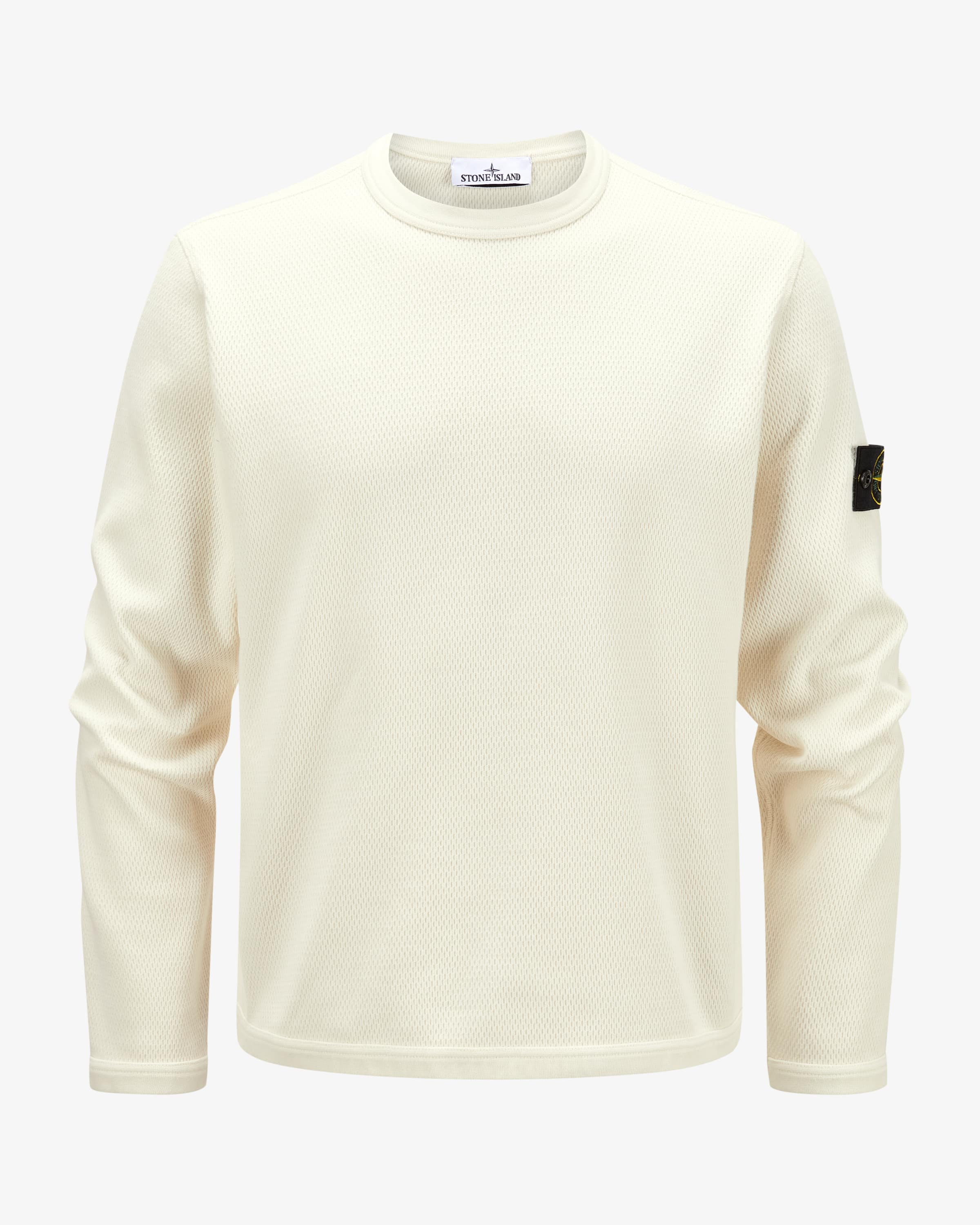 Sweatshirt for men from Stone Island in cream. Stone Island has stood for innovative for innovative material technologies and functional design with a clear, recognizable aesthetic, recognizable aesthetics. While the wide cut and the knitted knitted sweatshirt made from organic cotton create a comfortable companion for casual casual looks, the detachable logo badge lends the piece a typical label-typical character.