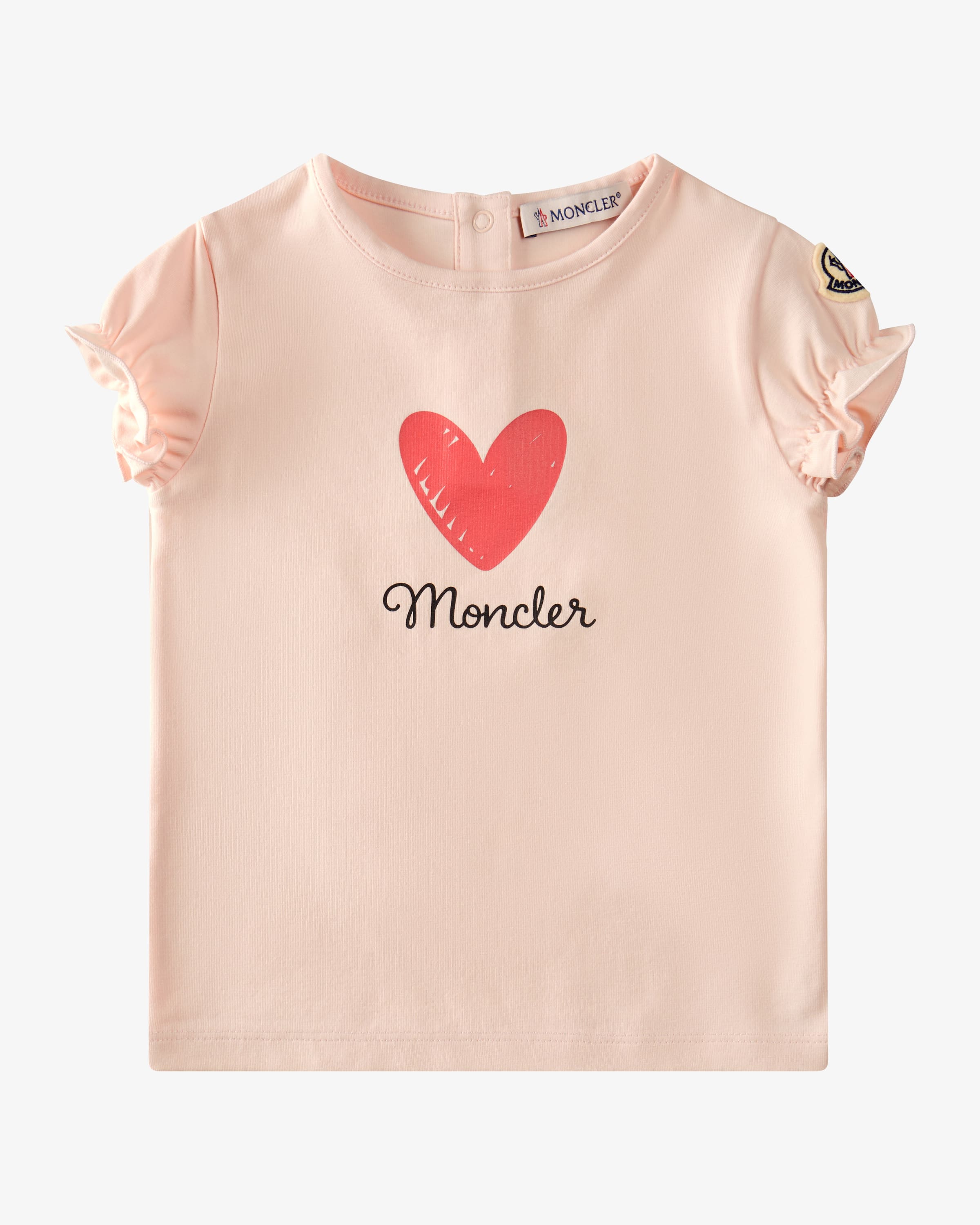 T-shirt for babies from Moncler Enfant in pink. The model impresses thanks to high-quality cotton fabric, while the buttoned back makes it easy to put on and take off and the and the cute heart logo print harmoniously round off the overall look. harmoniously round off the overall look.