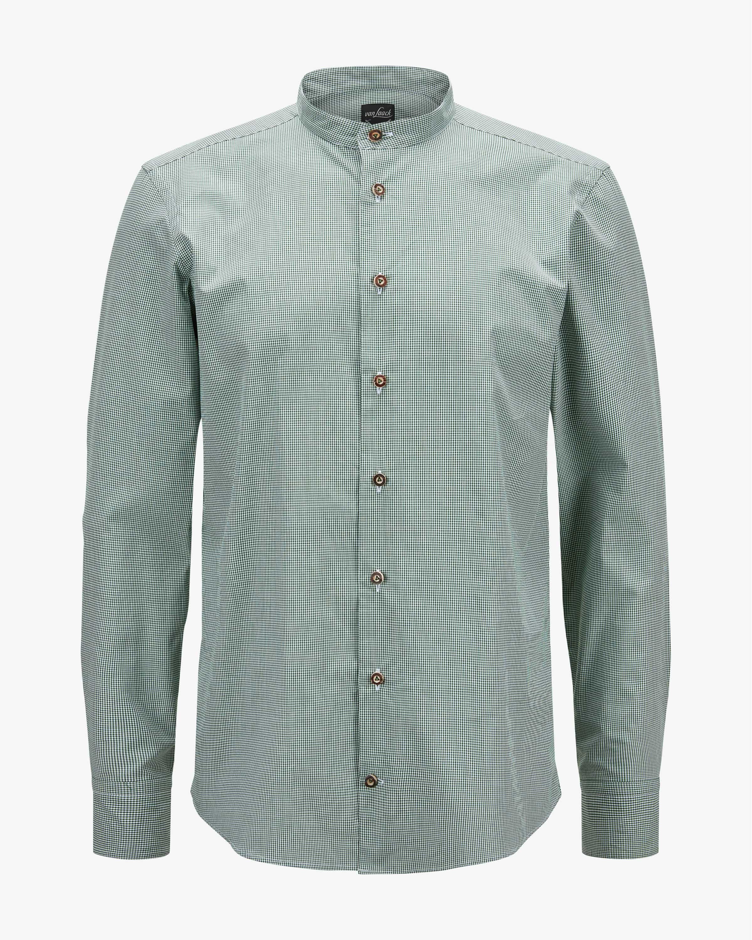 Tailor fit traditional shirt for men by Van Laack in dark green and white. The traditional German company has stood for tailored shirts and high-quality blouses since 1881 - elegant elegant and with attention to detail. Rustic horn buttons and a discreet stand-up collar collar characterize the traditional style, while the tailored fit and the cotton cotton quality lend the look a traditional charm.
