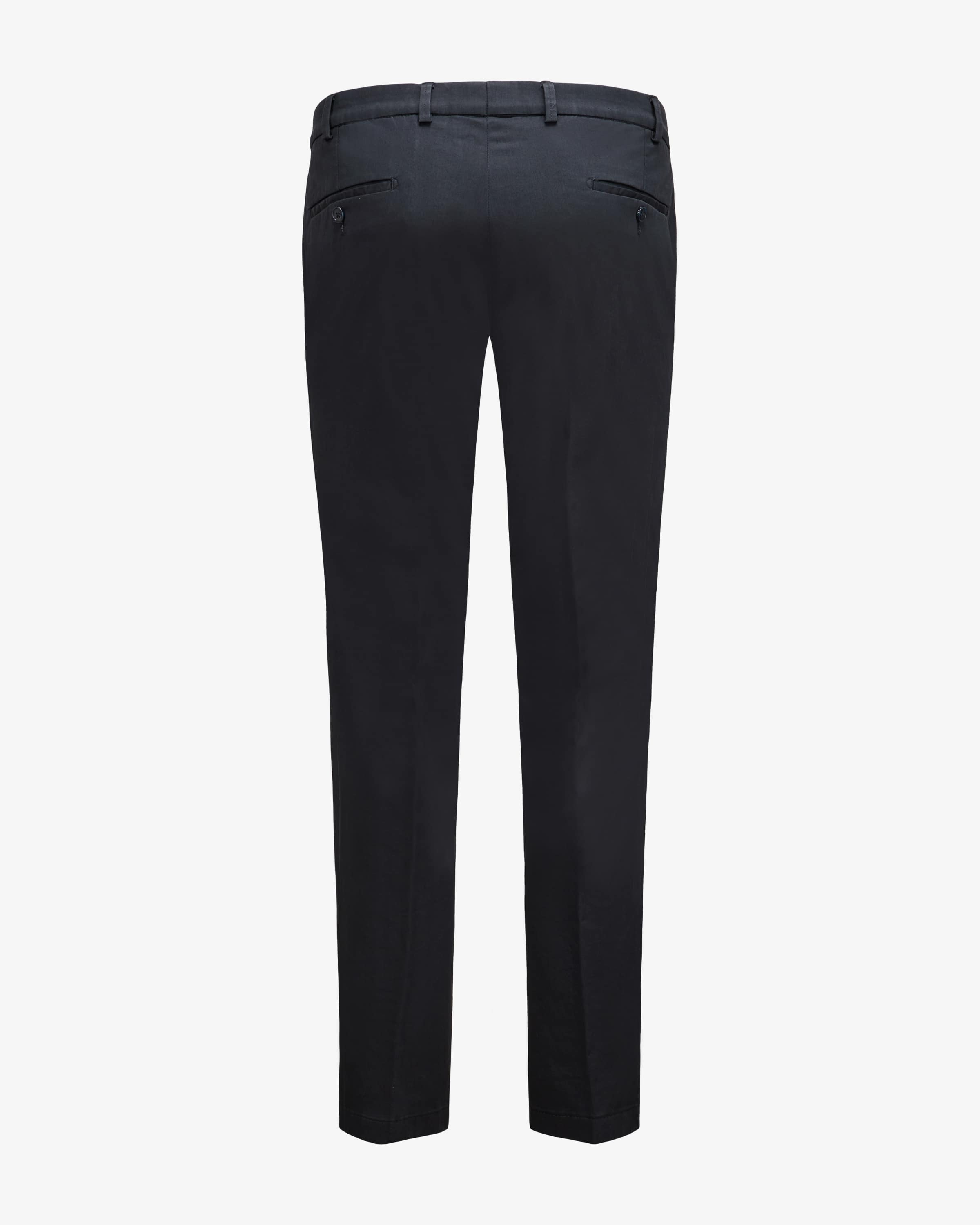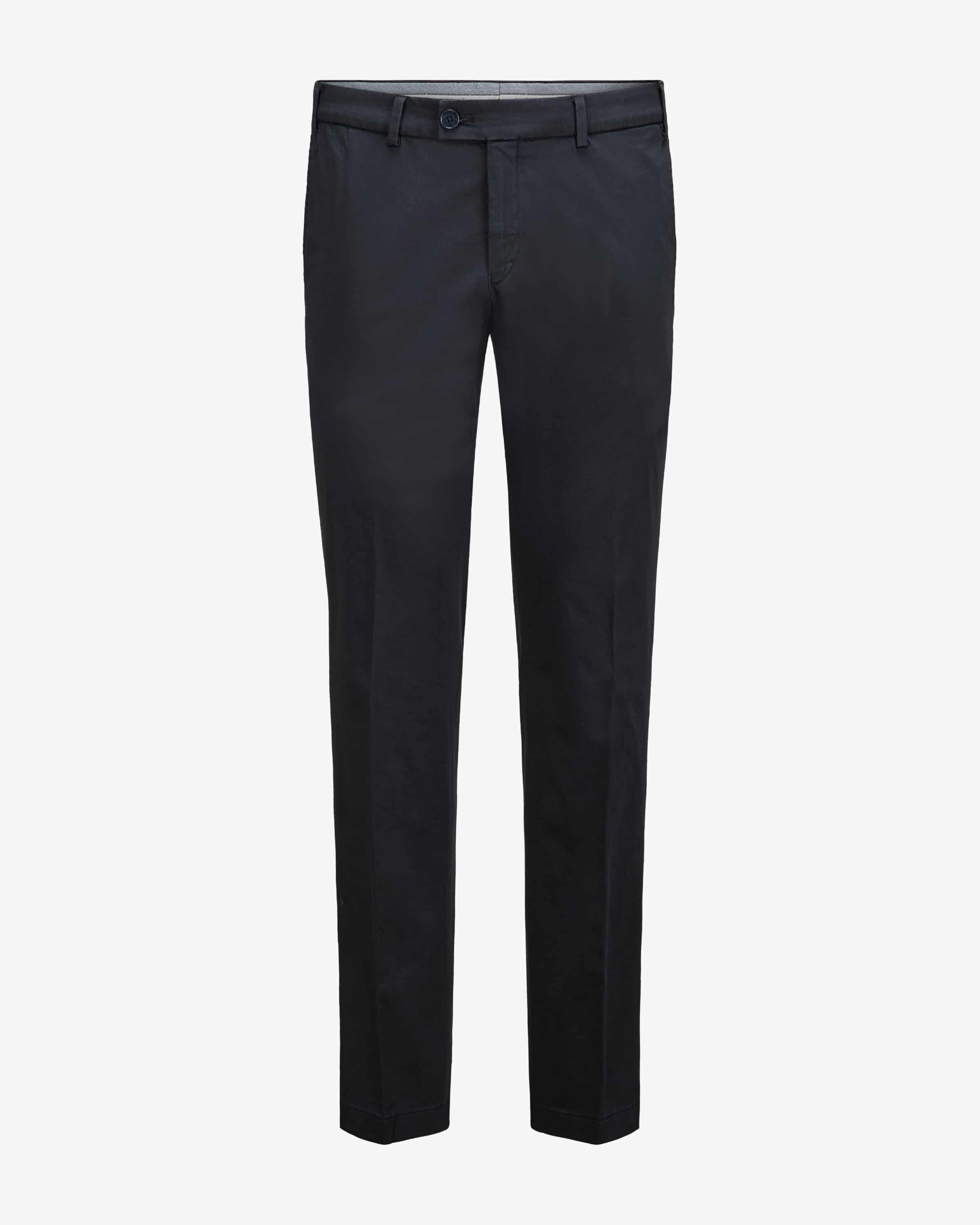 Tilo chinos for men from Hiltl in navy. This model in a classic design with a pleasant material blend that makes for special wearing moments, while classic details and the subtly iridescent look create a masculine companion for versatile styles.