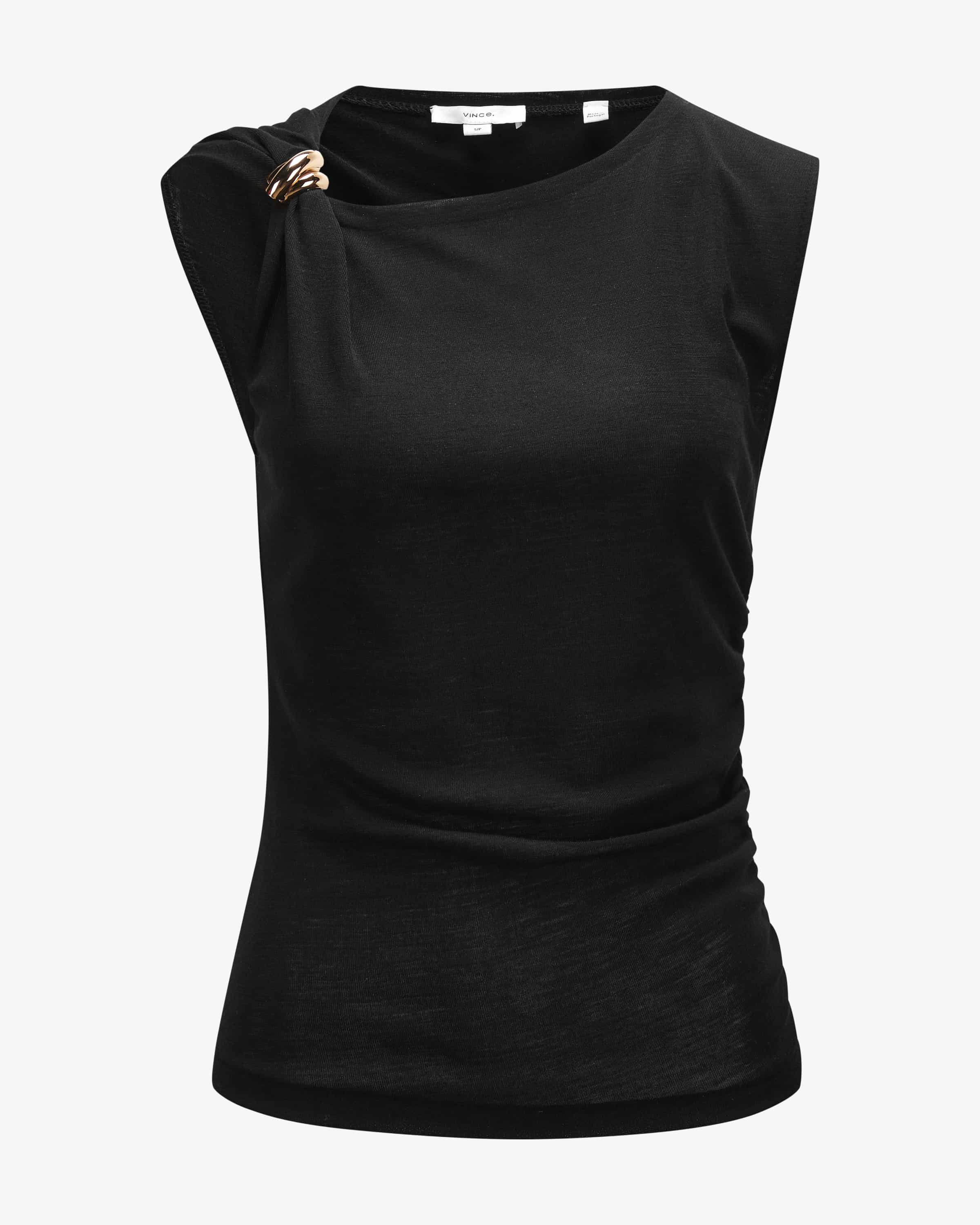 Top for women from Vince in black. Made from a high-quality wool blend captivates thanks to fashionable gathers and the golden shoulder detail in a feminine feminine look. - A stylish companion for any occasion.