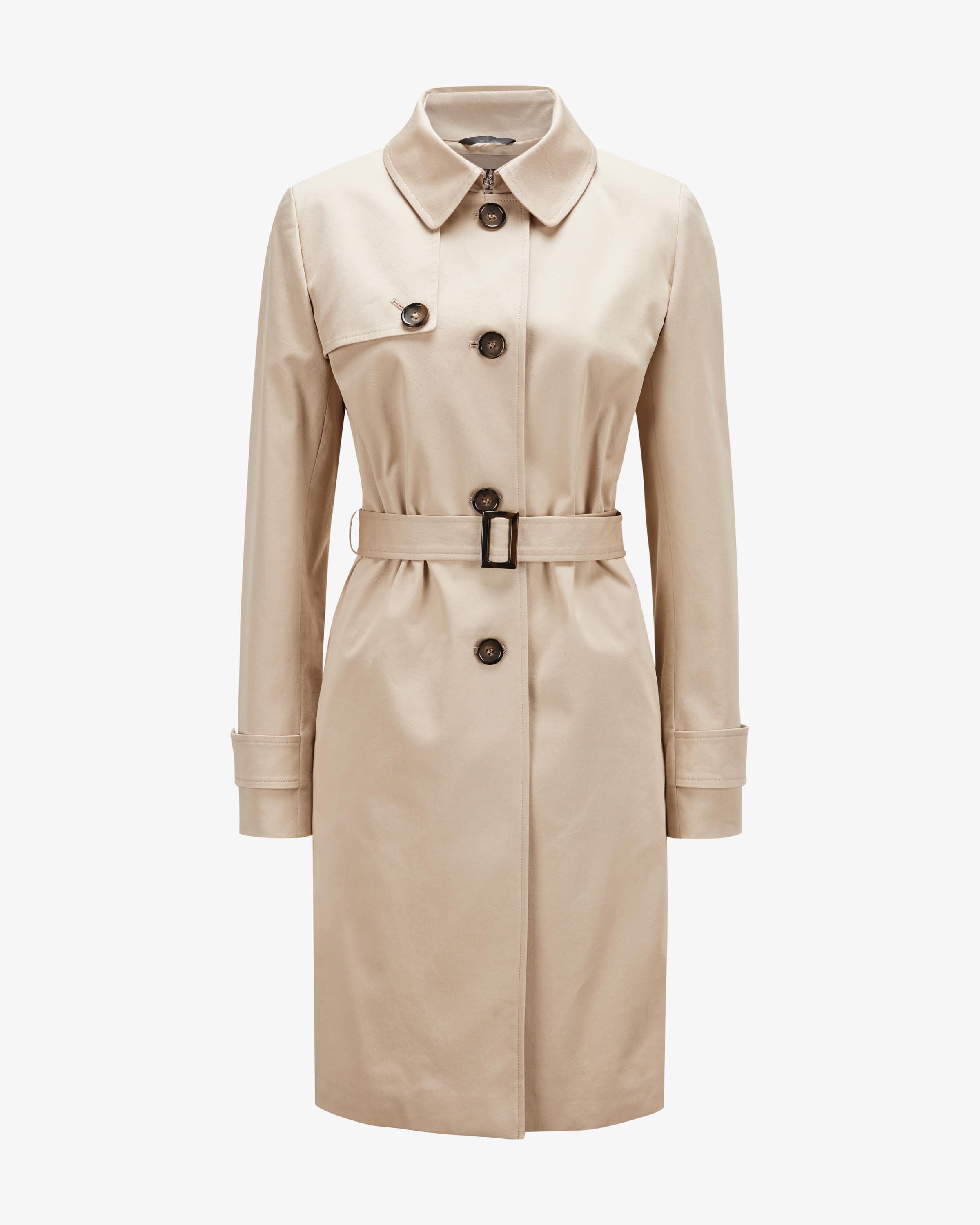 Trench coat for women from Cinzia Rocca in beige. The model made from stretch cotton cotton scores with a pleasant feel, while the classic design creates a stylish creates a stylish transitional companion. The detachable waist belt also creates a feminine silhouette.