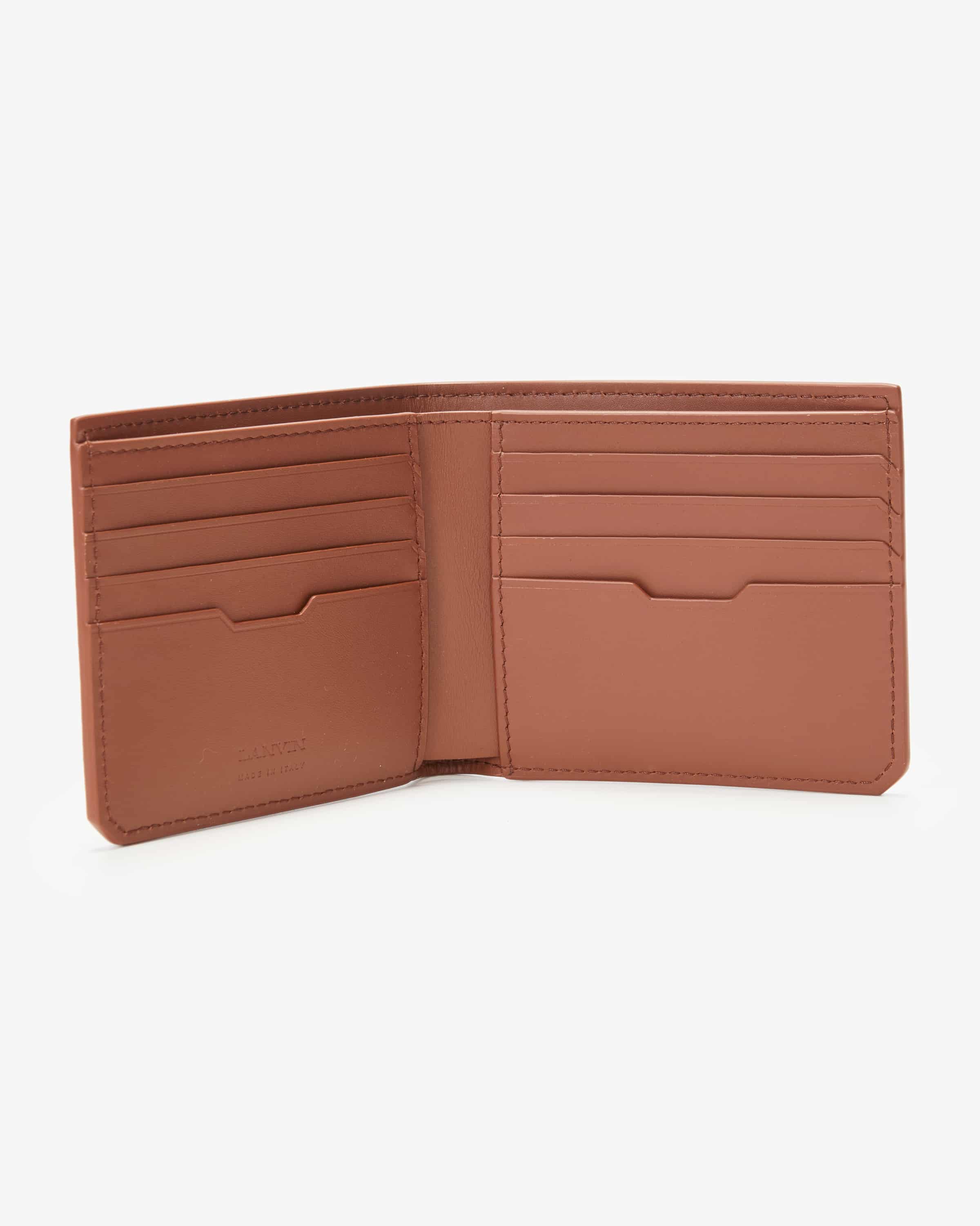 Wallet for men from Lanvin in brown. Thanks to the high-quality leather and the eye-catching logo, the model impresses with its simple elegance. At the same time the piece offers sufficient space, while also fitting into any trouser pocket. pocket.