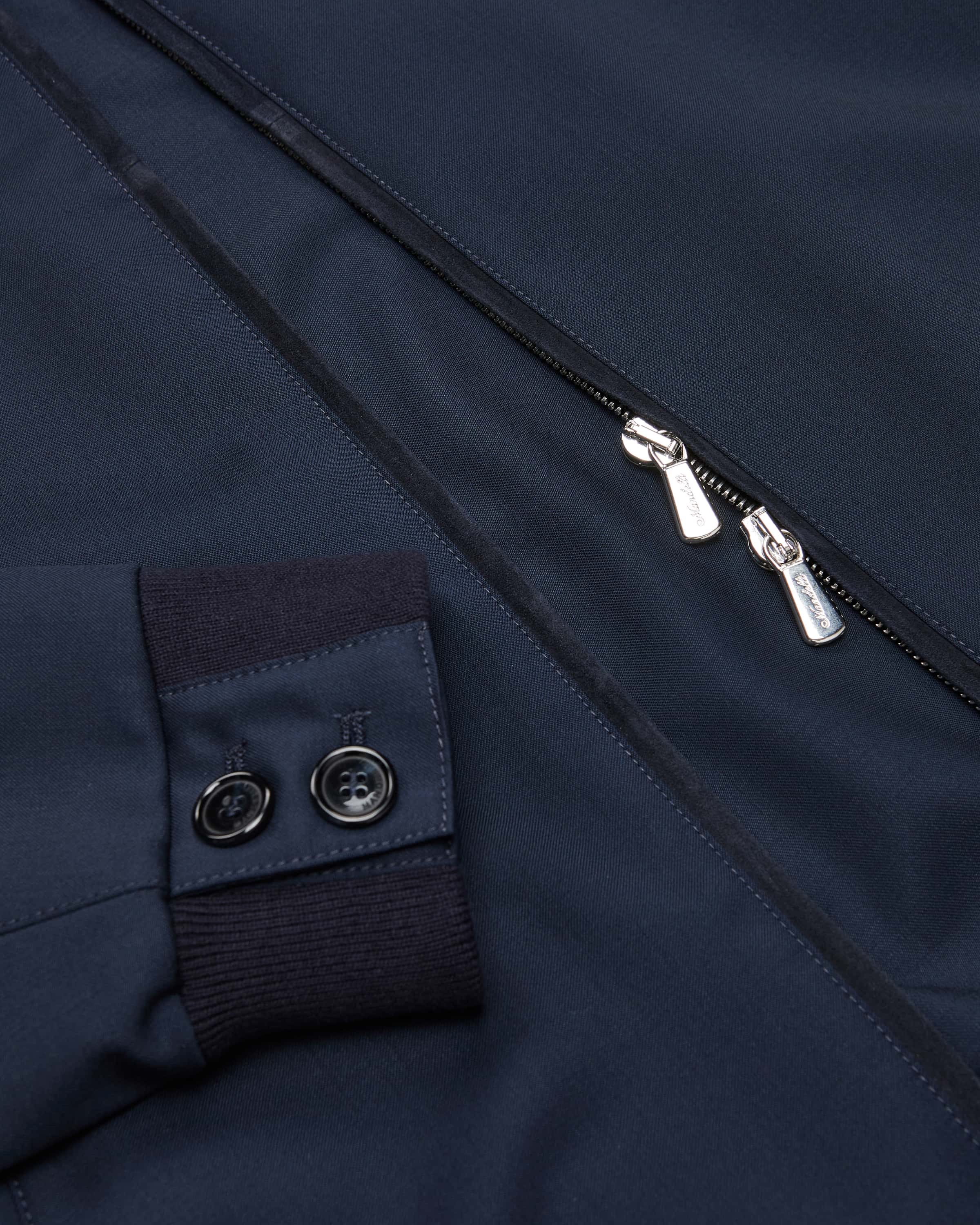 Wool blouson for men from Mandelli in navy. This model impresses with its lightweight wool quality that promises pleasant wearing comfort. Sporty rib-knit cuffs and casual blouson details skilfully round off the fashionable style.