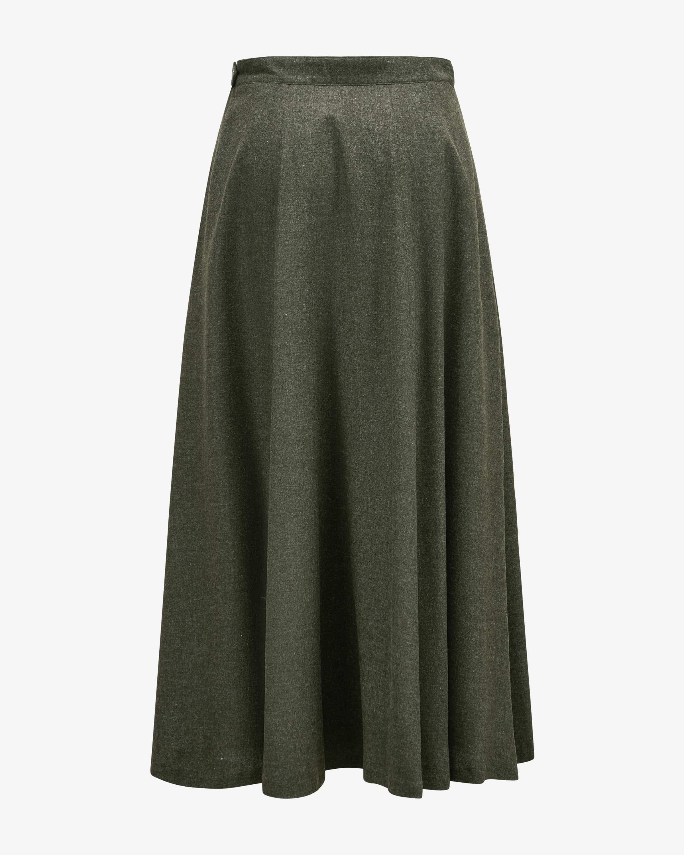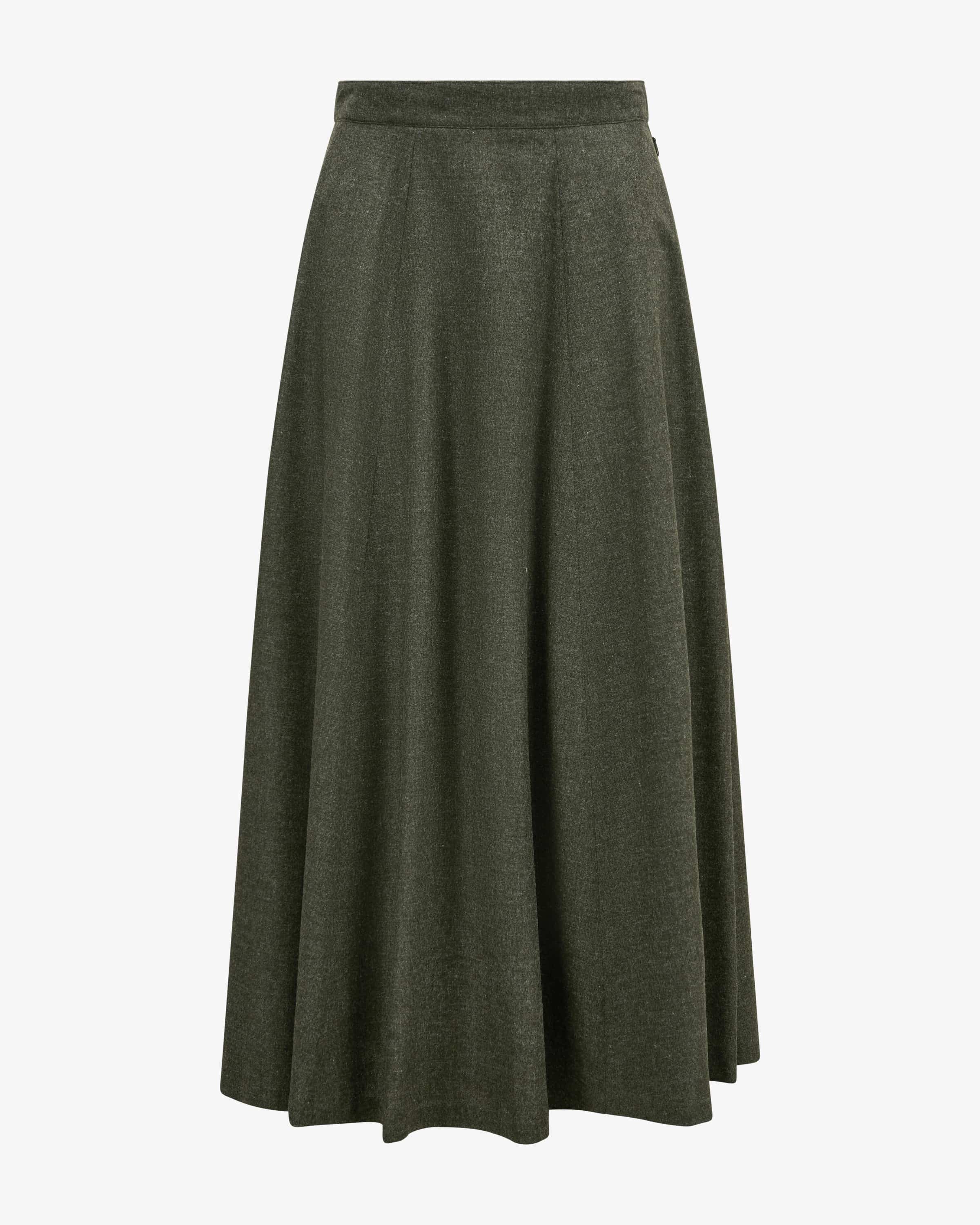 Ileane traditional skirt for women by Grasegger in olive. Designed in cooperation with Lodenfrey presents itself in a minimalist, traditional look and light merino wool and light merino wool quality, which ensures pleasant wearing comfort. for pleasant wearing comfort.