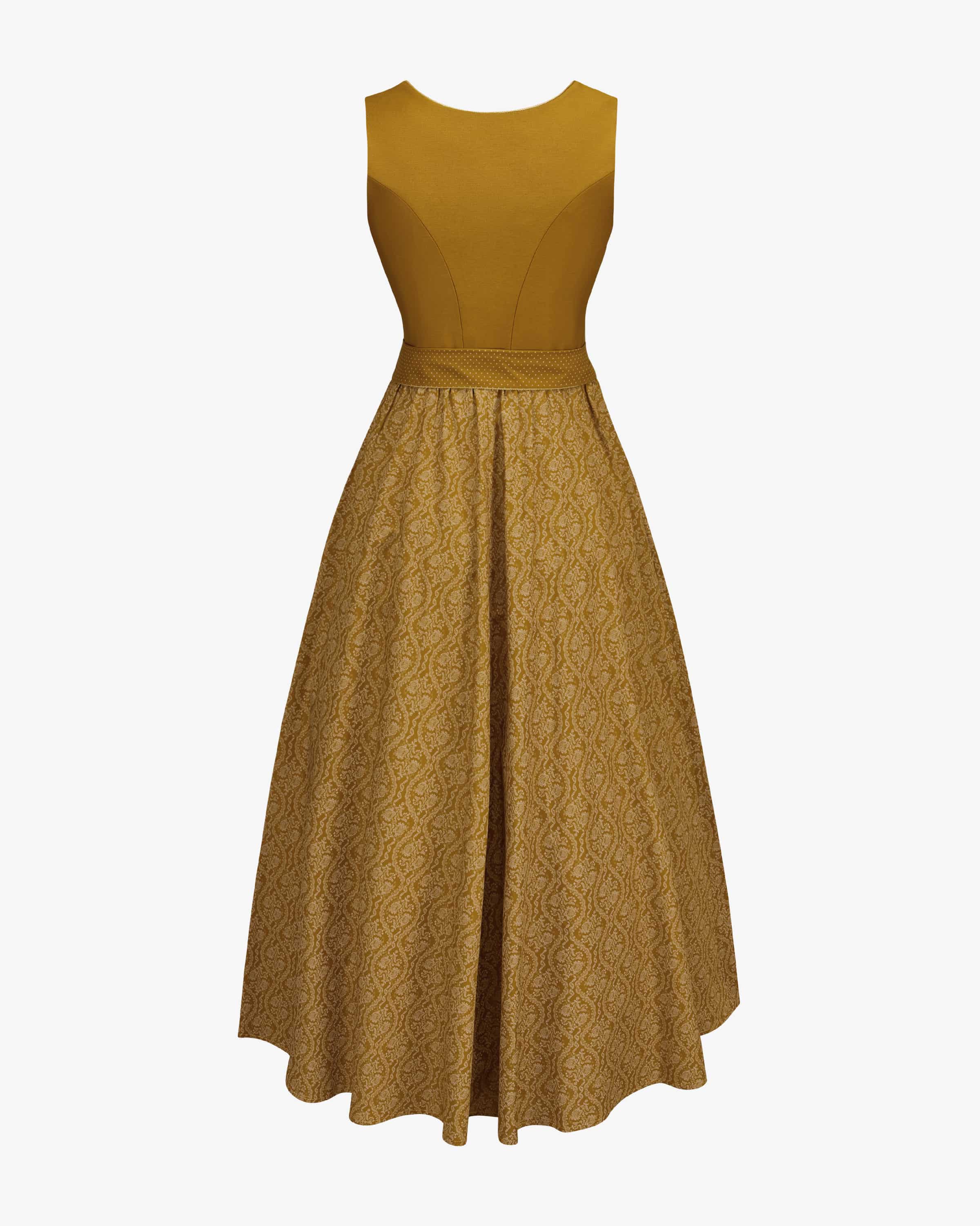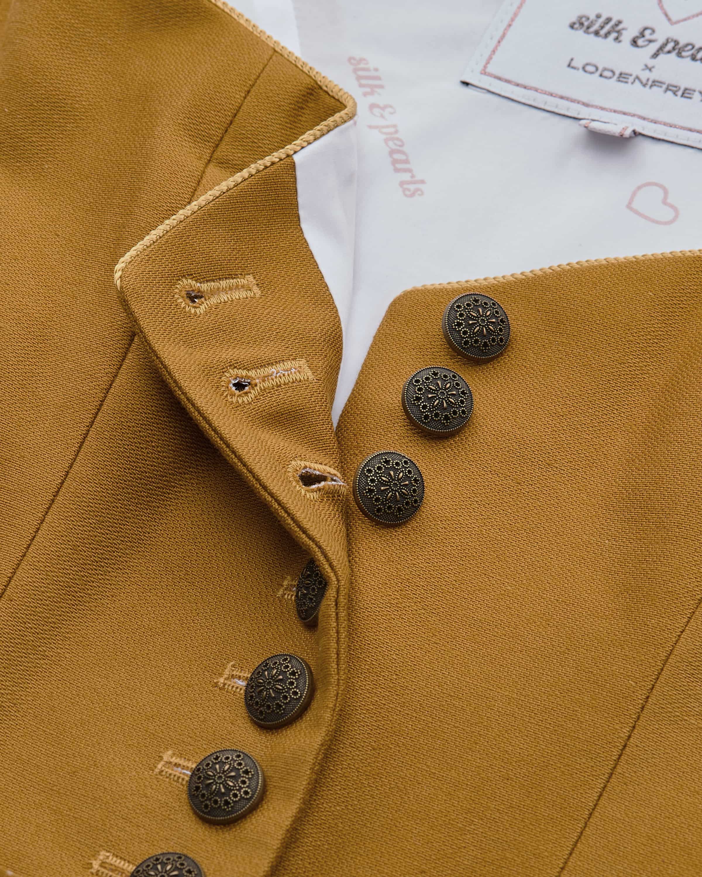 Dirndl lang mit Schürze für Damen von Silk & Pearls in Ocker. Das exklusiv bei Lodenfrey erhältliche Modell aus Baumwolle überzeugt im angesagten Ton-in-Ton- Design. Das schlichte Mieder ist mit einem klassischen Herz-Ausschnitt versehen und unterstreicht das traditionelle Gesamtbild harmonisch. Die gepunktete Schürze rundet den Trachten-Look perfekt ab.