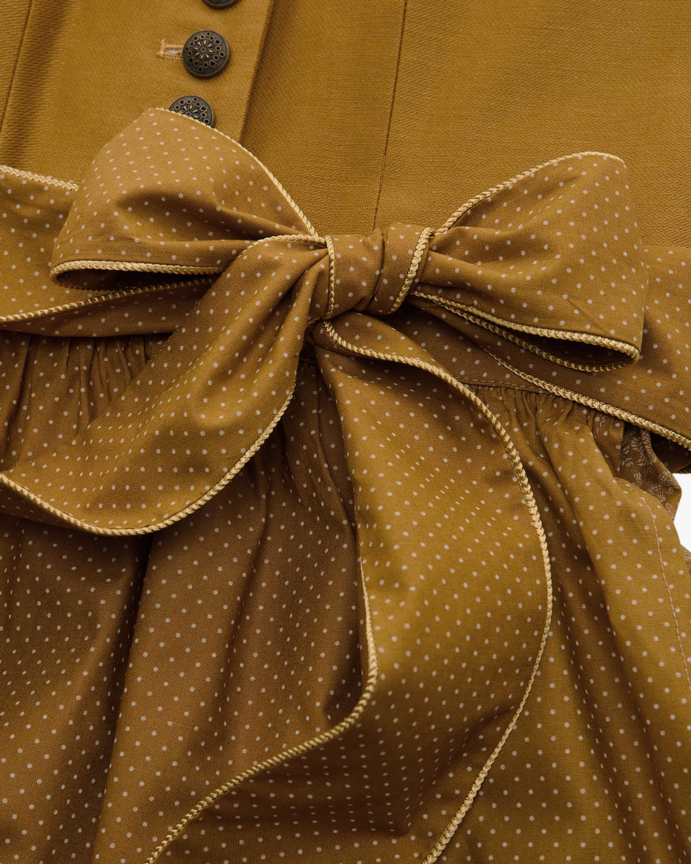 • Gepunktete Schürze mit paspelierten Bändern